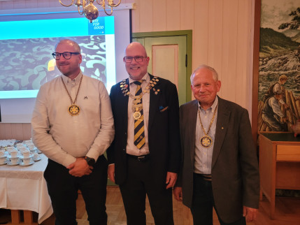 AG for Hedmark Sør i D2305 : Uno Arnesen, Guvernør for D2305: Morten Mo, President for Flisa Rotaryklubb: Ivar Opås.